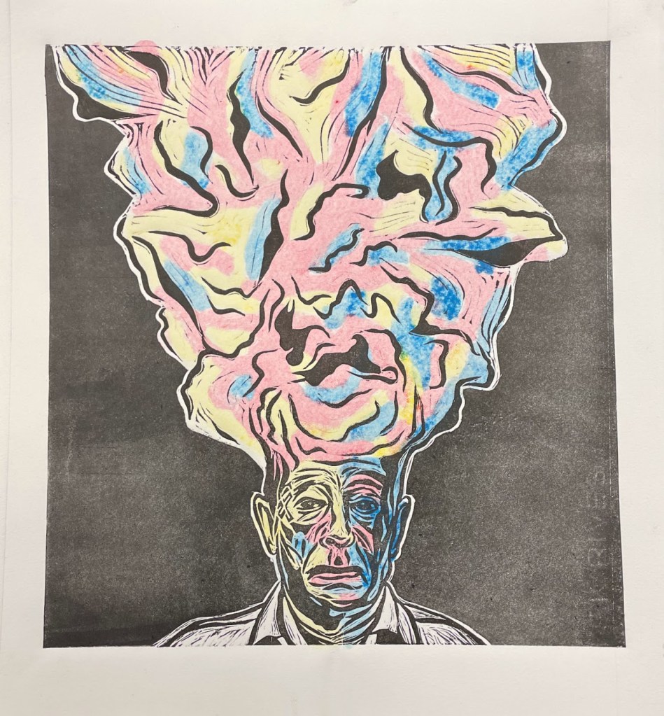 watercolor, pen and marker, Spirograph™, and screen print on Bristol